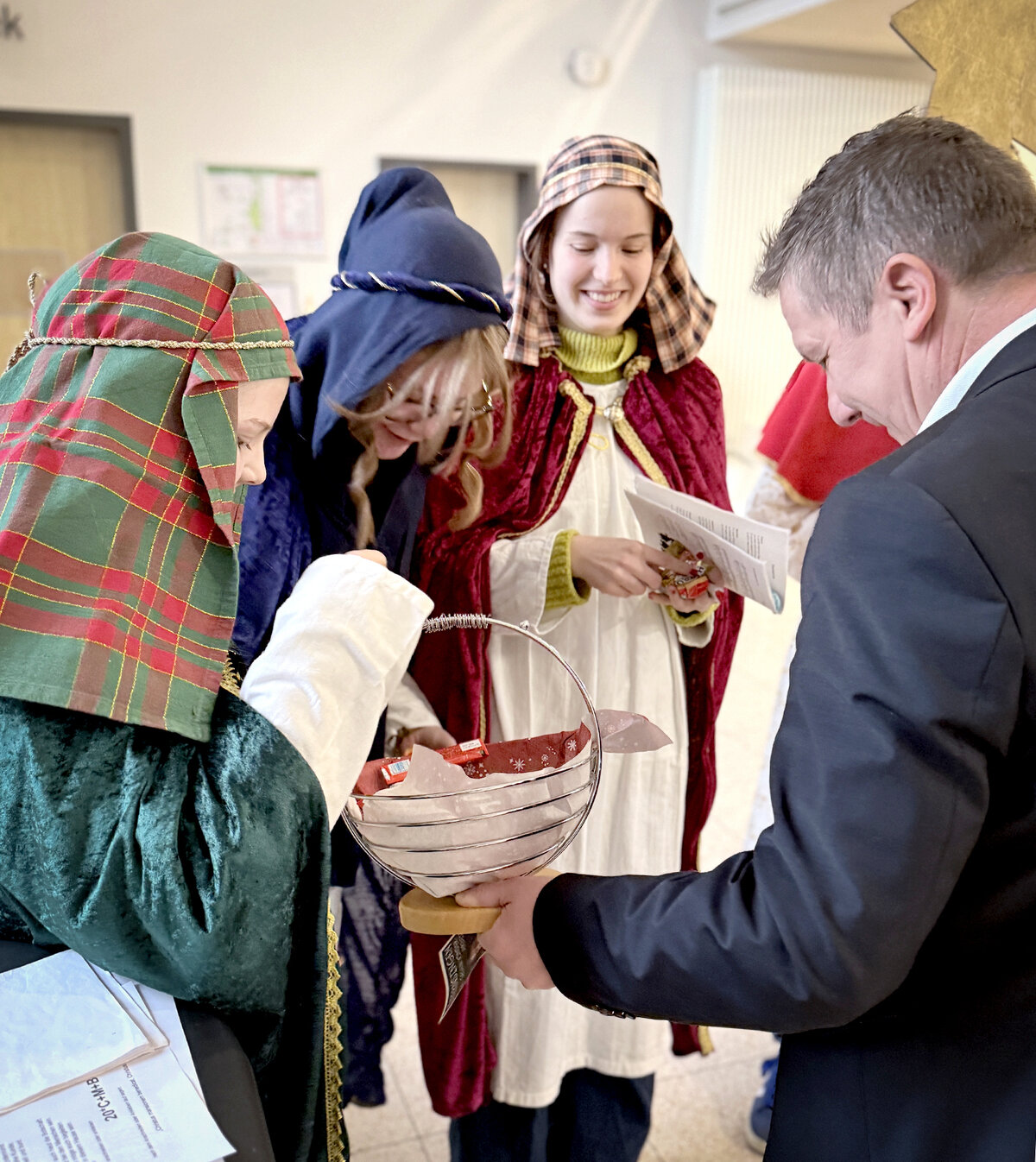 Mit dem traditionellen Segensspruch „Christus segne dieses Haus“ brachten die Sternsinger den Segen ins Rathaus und machten zugleich auf das diesjährige Aktionsthema aufmerksam. Unter dem Motto „Schule statt Fabrik – Sternsingen gegen Kinderarbeit“ steht 2026 der weltweite Einsatz für die Kinderrechte auf Schutz und Bildung im Mittelpunkt.
