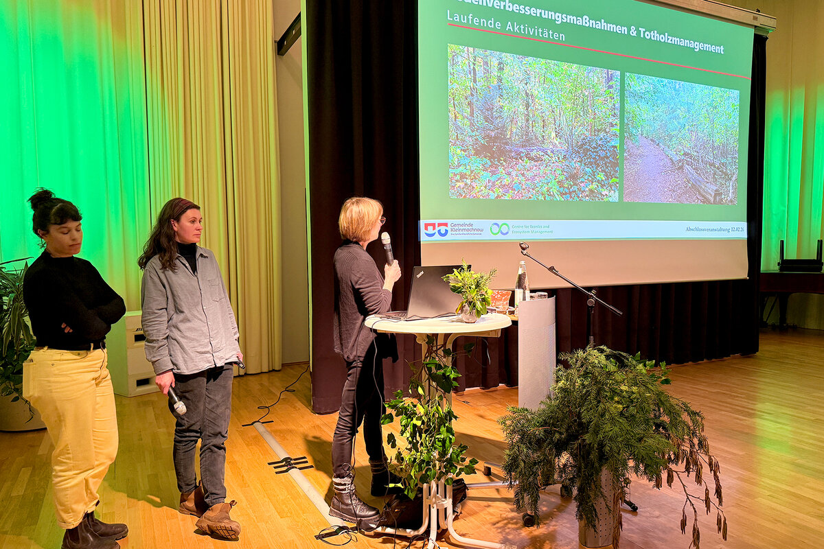 Mit dem Projektabschluss „Zukunftsfähiger Gemeindewald“ zog die Gemeinde am 12. Februar Bilanz über drei Jahre Forschung, Beteiligung und erste praktische Maßnahmen. Der Veranstaltungstag begann am Nachmittag mit einer fachlich begleiteten Exkursion durch den Bannwald und wurde am Abend im Bürgersaal mit einem Fachvortrag sowie der Präsentation der Projektergebnisse fortgesetzt.